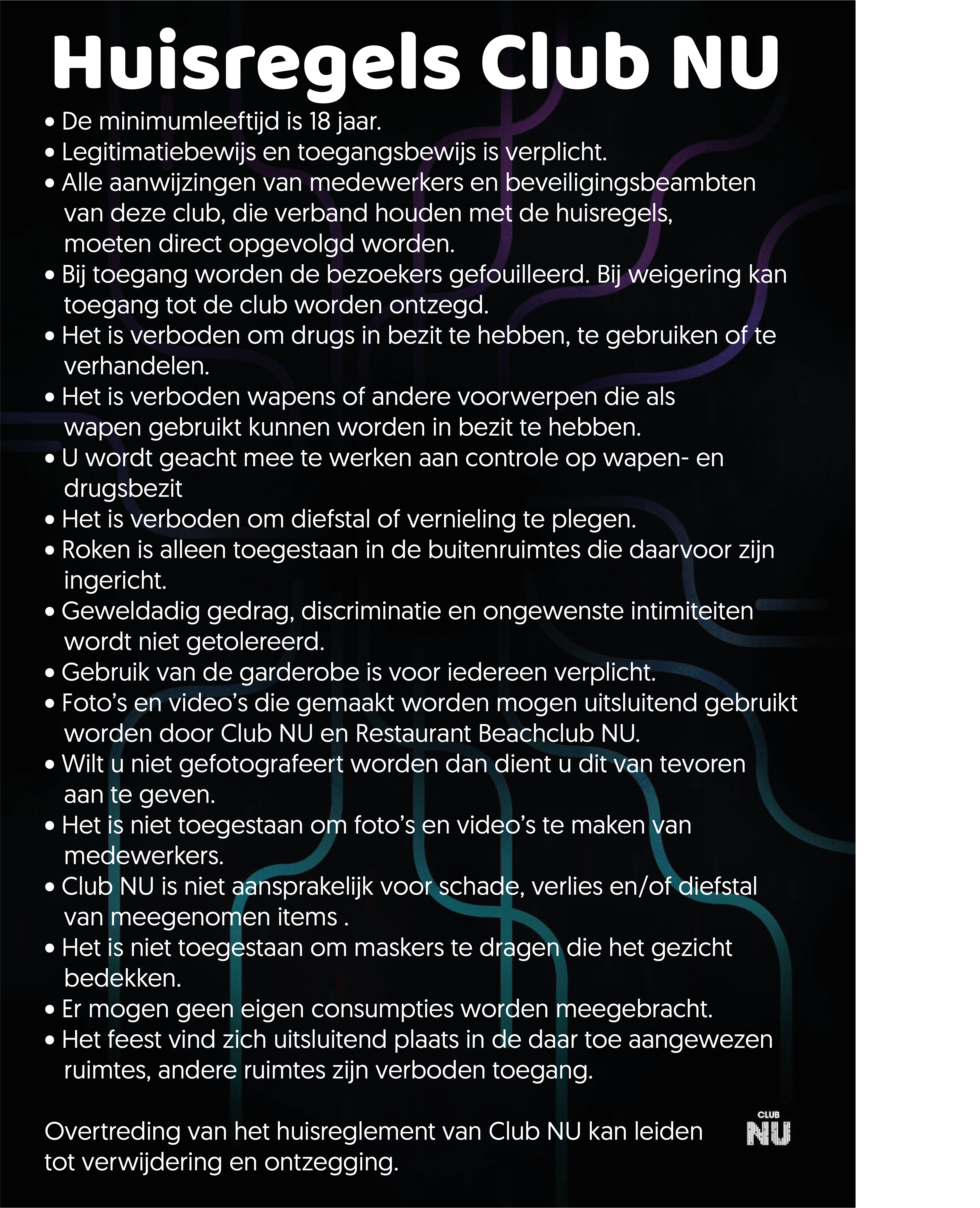 Bekijk onder aan de pagina ook de huisregels van onze events!